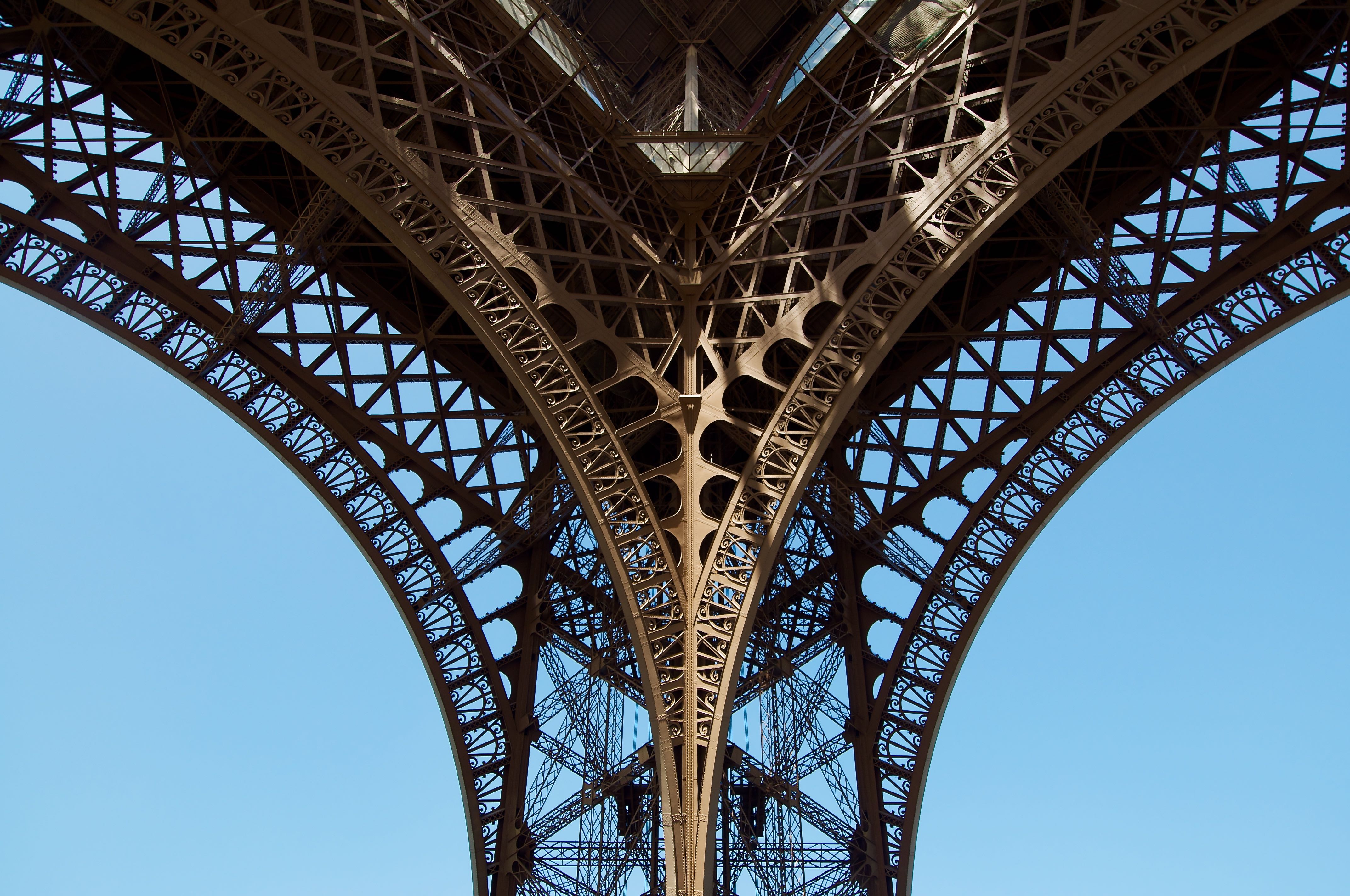 In July I had the good fortune to visit Europe. When in Paris, a photo of the Eiffel Tower is mandatory. However, I was able to get a somewhat novel view of the tower - from underneath. I like the symmetry here.