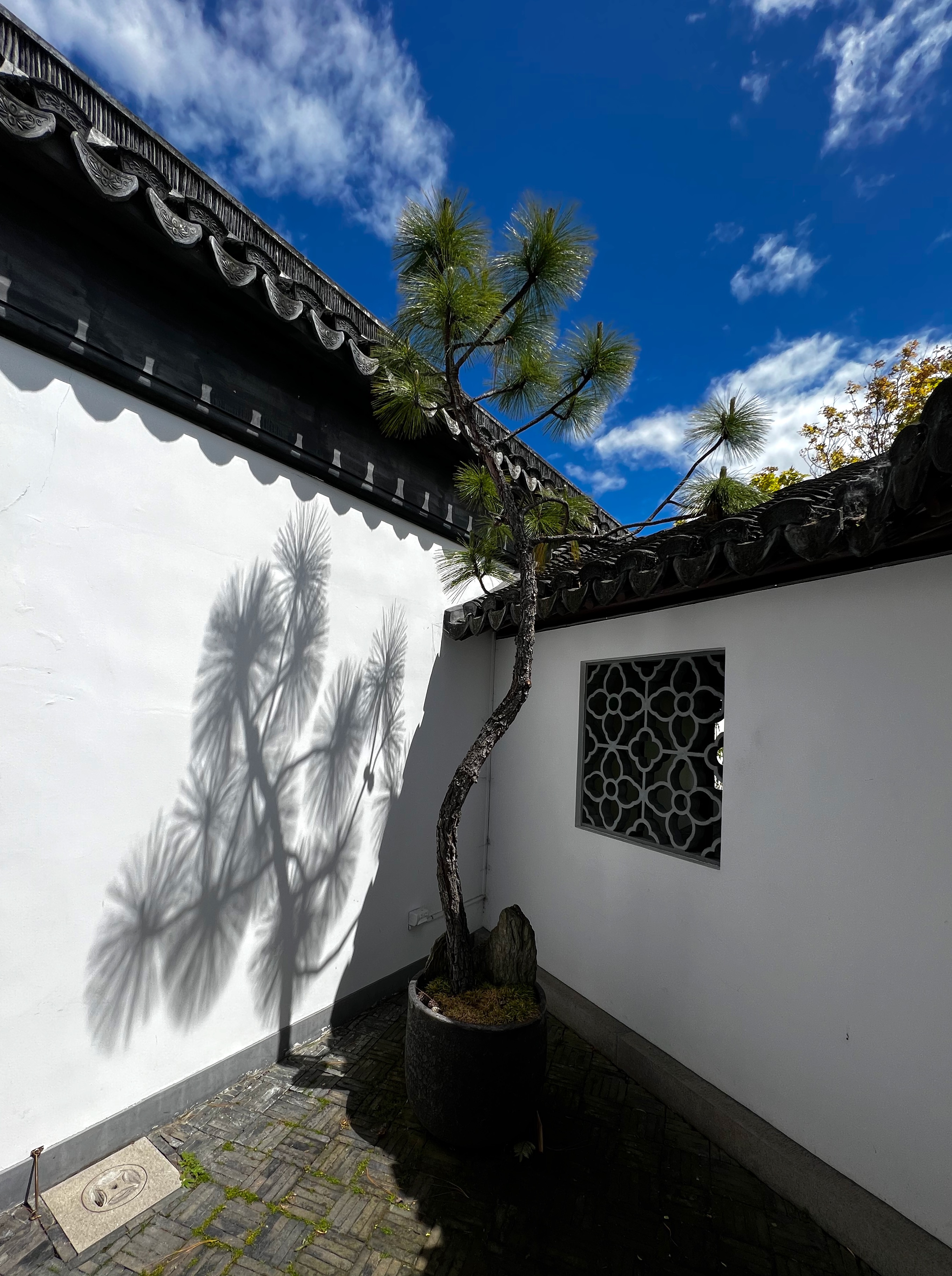 This tree - in the Chinese Garden in Dunedin, New Zealand - wasn't particularly interesting by itself, but it cast an interesting shadow.
