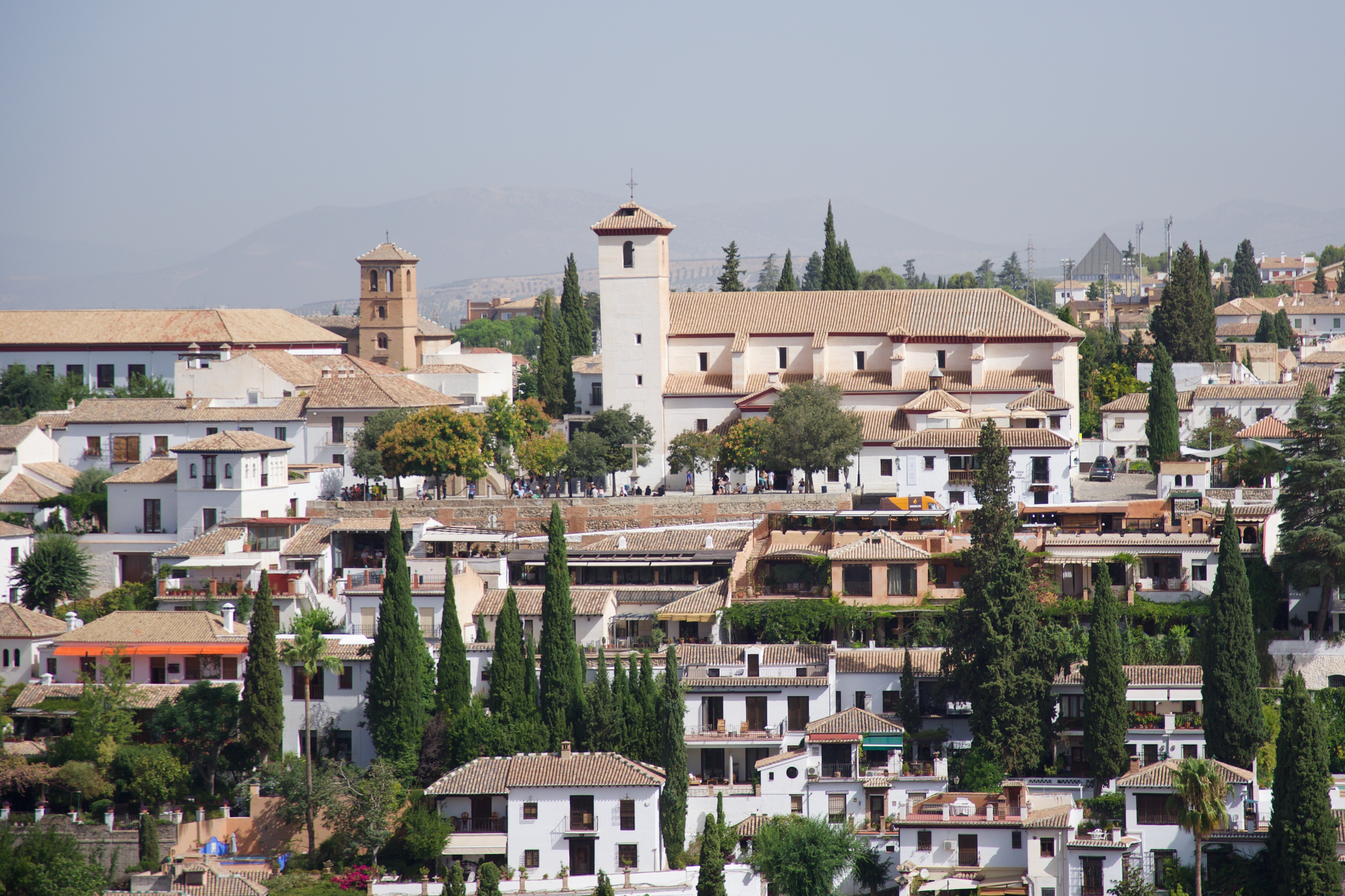 Looking towards the San Nicolas Viewpoint (in the Albaicin region of Granada) from the Alhambra