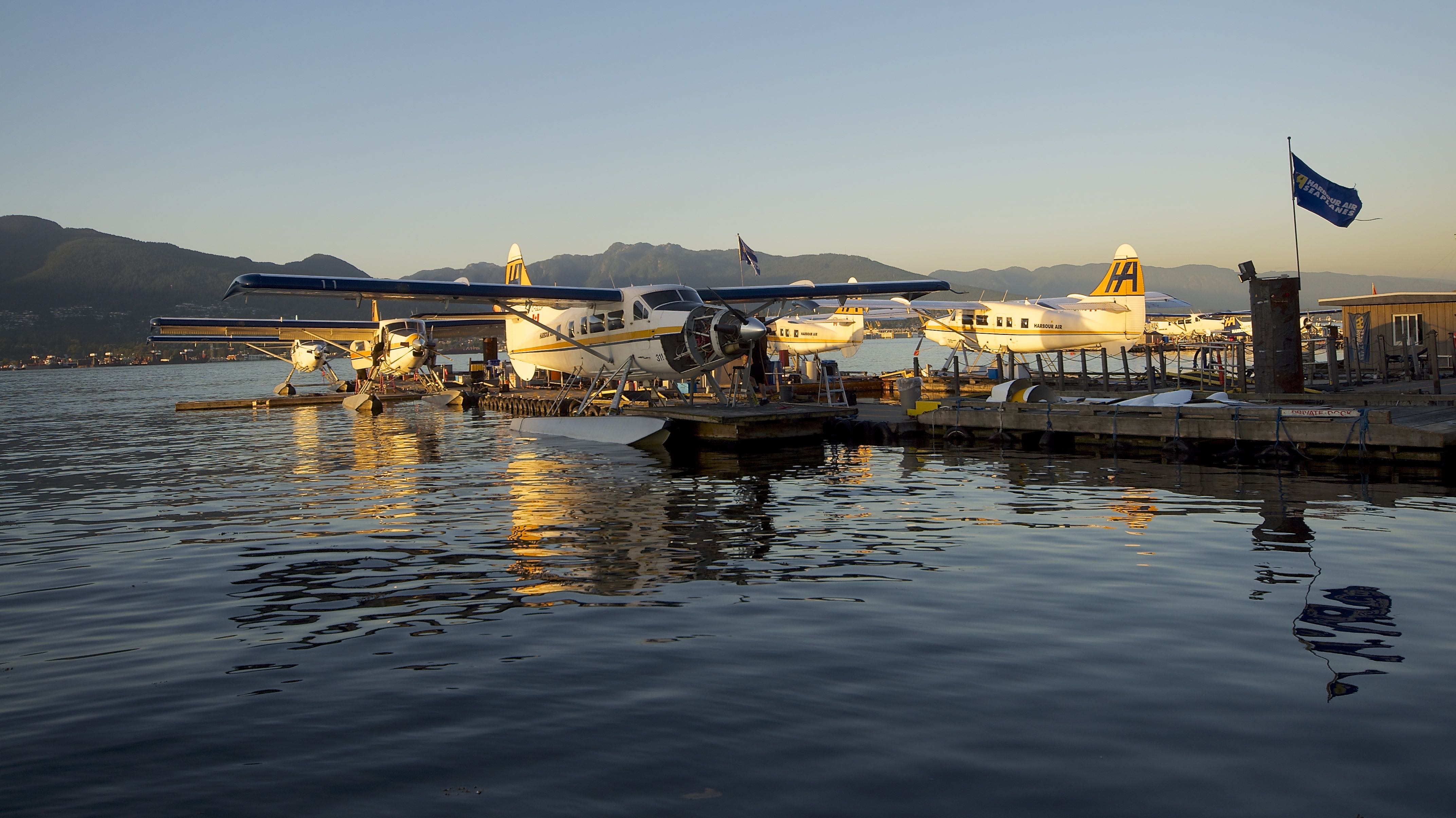 Seaplanes on Vancouver Harbour at sunset