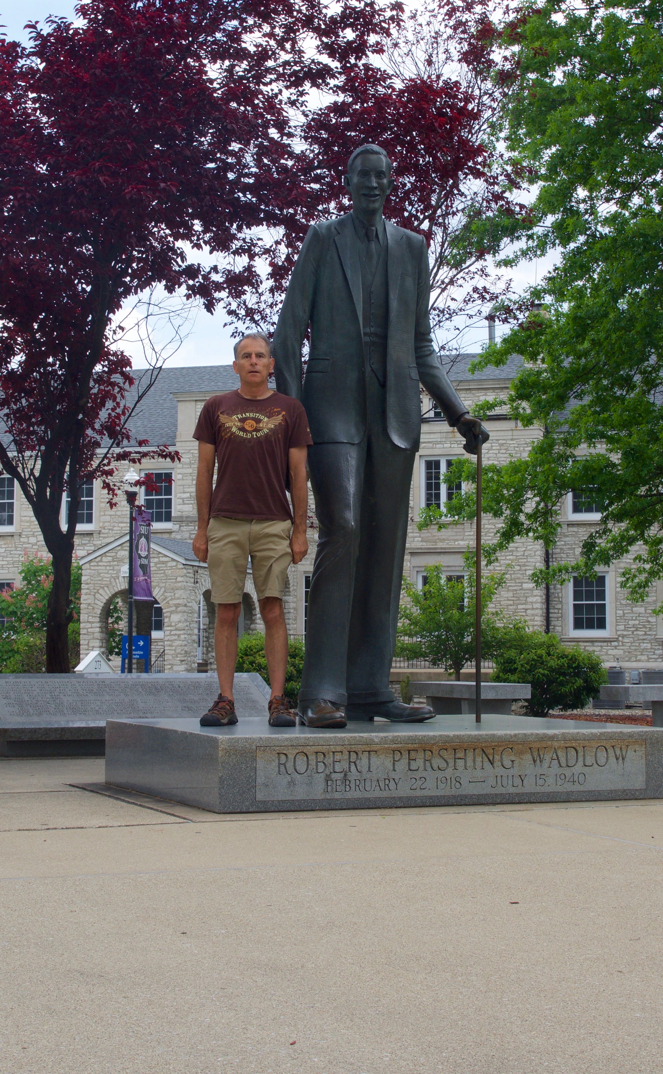 Standing beside a life-sized statue of Robert Wadlow - the world's tallest person - in Alton, IL