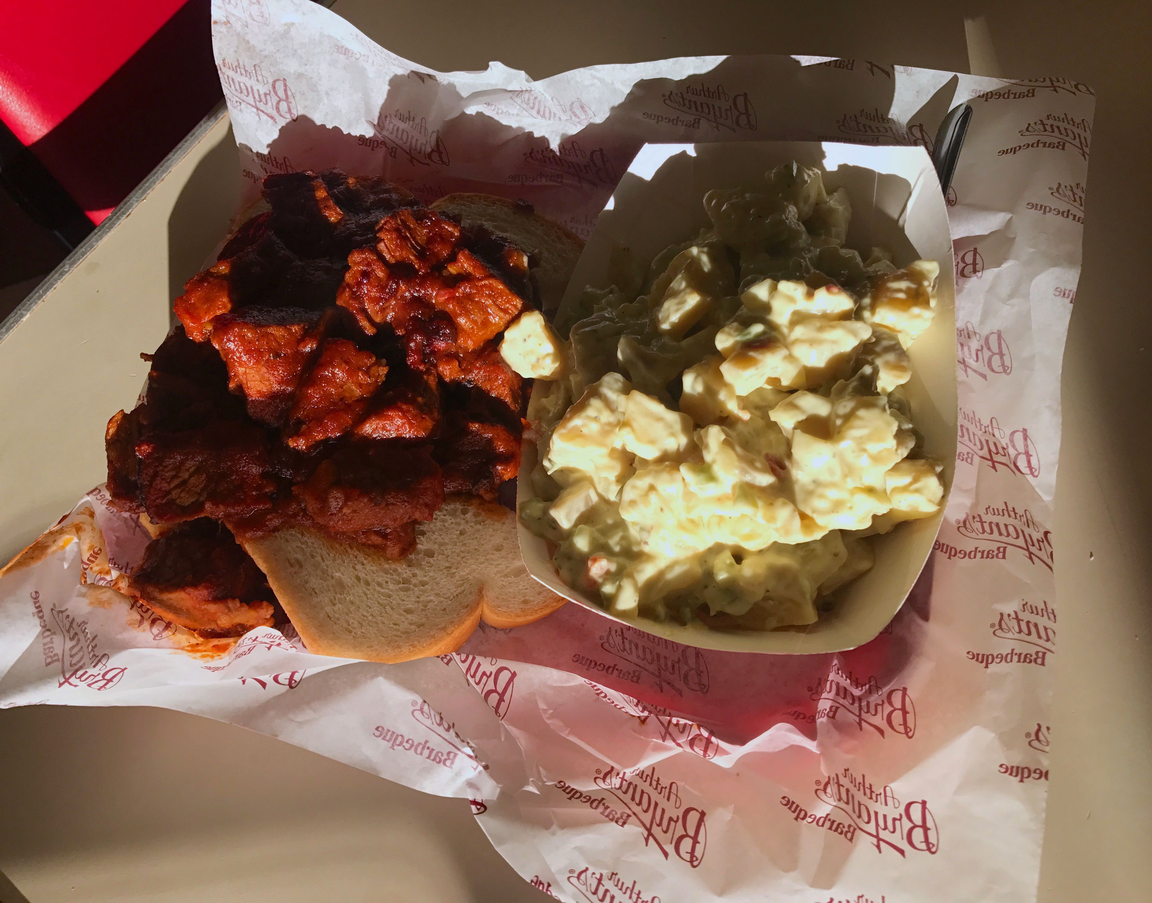 'Burnt Ends' and Potato Salad, at Arthur Bryant's Barbeque, Kansas City